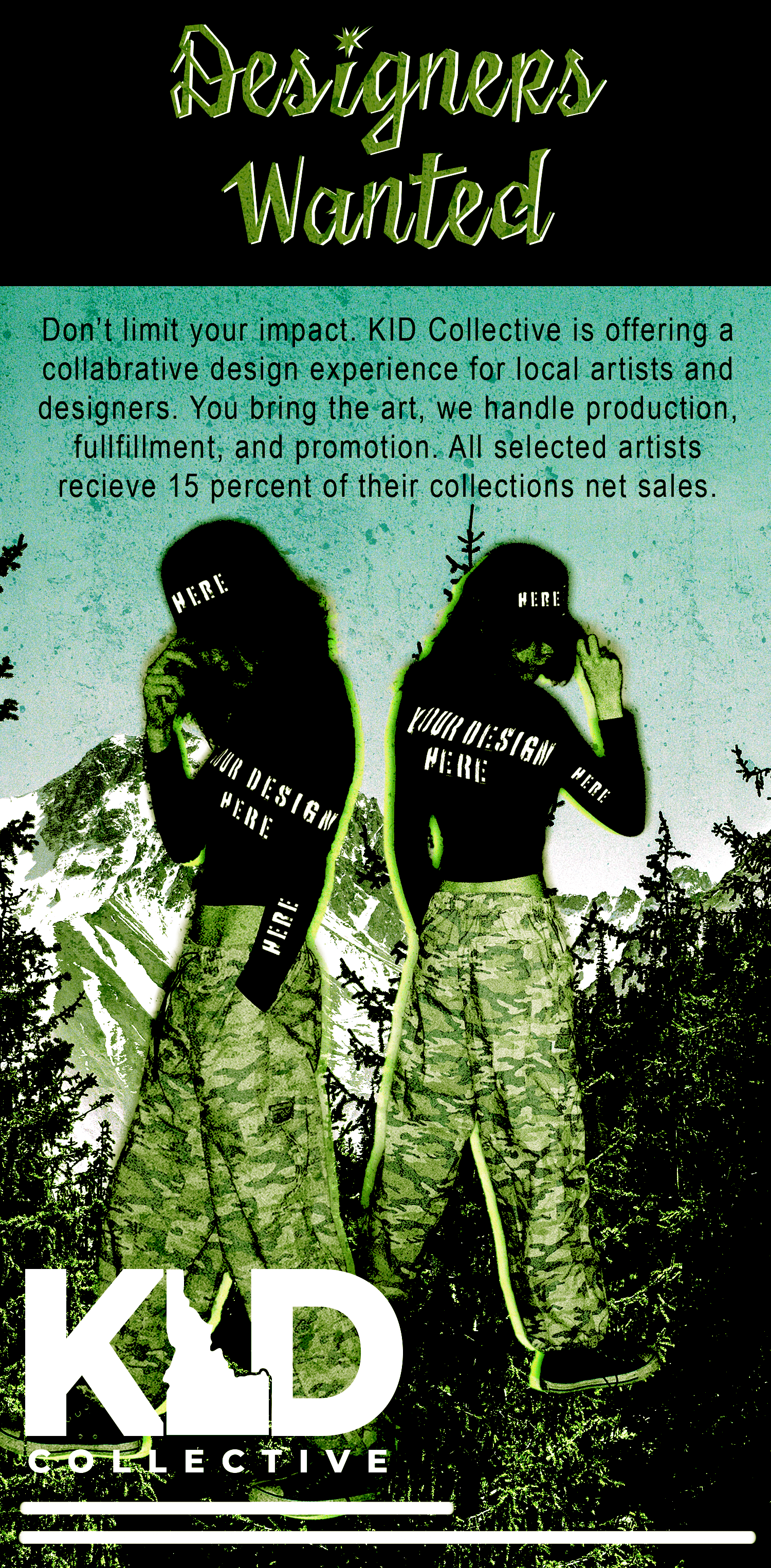 KID Collective is more than just clothing—it’s a local artists collective. Through our Designers Collective, we collaborate with North Idaho artists and designers to create exclusive apparel and accessories that showcase original artwork and authentic local stories.